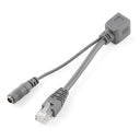 Each cable has a female RJ45 on one side which is adapted to a male RJ45 and 5.5x2.1mm barrel jack connector on the other side. The ‘injector’ cable has a female barrel jack connector and the ‘splitter’ cable has a male barrel jack. Simply attach the cables at each end of your network cable, plug the male barrel jack from the splitter into your target device and plug your power adapter into the injector. Now you can use one cable to provide both power and data for your Ethernet enabled device.