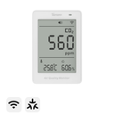 • Multi-metric environmental monitoring: Displays carbon dioxide (CO₂), temperature and humidity, with selectable temperature units.